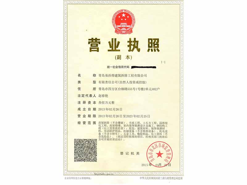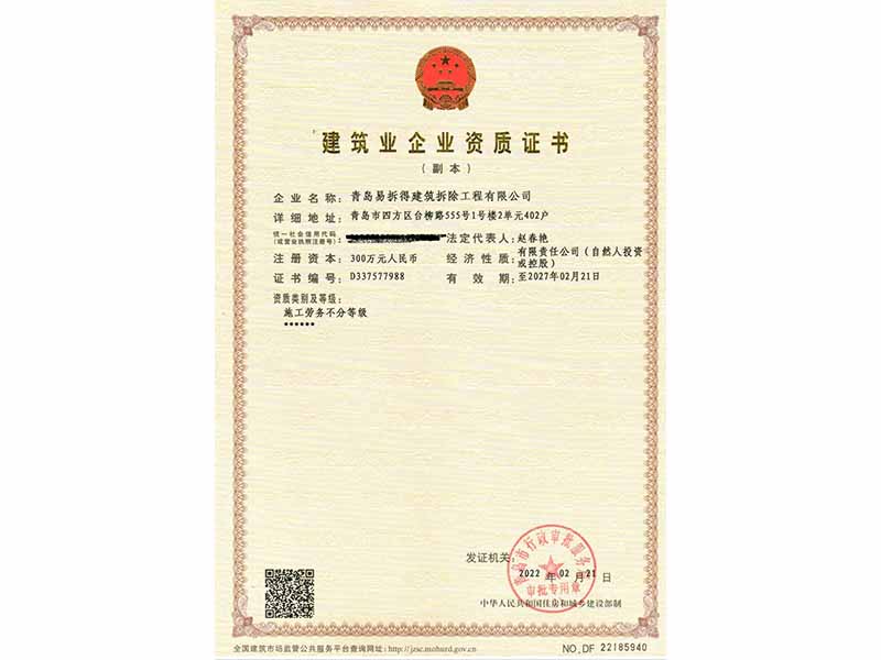 “安 全至上、優(yōu) 質環(huán)保”是青島易拆得建筑拆除工程有限公司的企業(yè)宗旨,公司全體員工以“團結、誠信、創(chuàng)新、高 效的企業(yè)精神愿為建筑行業(yè)的發(fā)展做出更大的貢獻,真誠希望與社會各界及建筑同仁精誠合作、共享共贏。